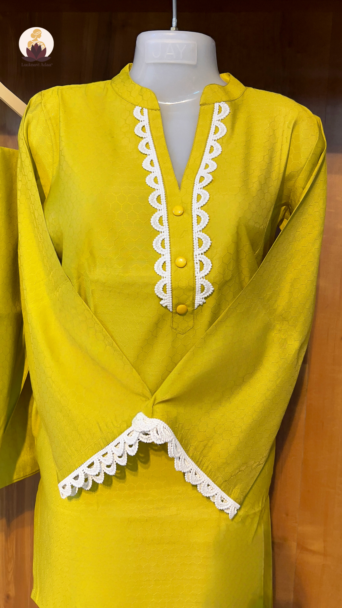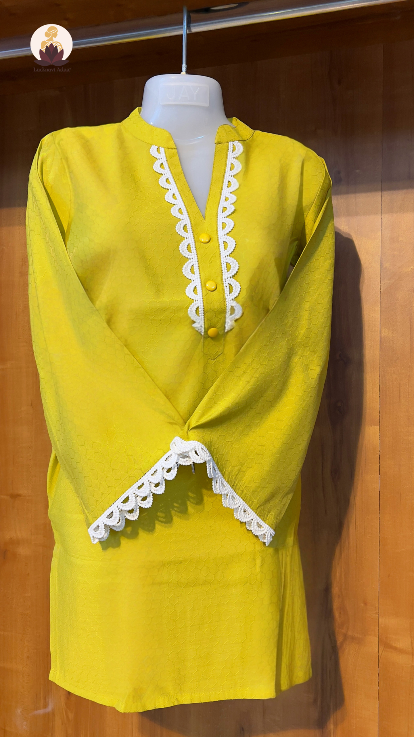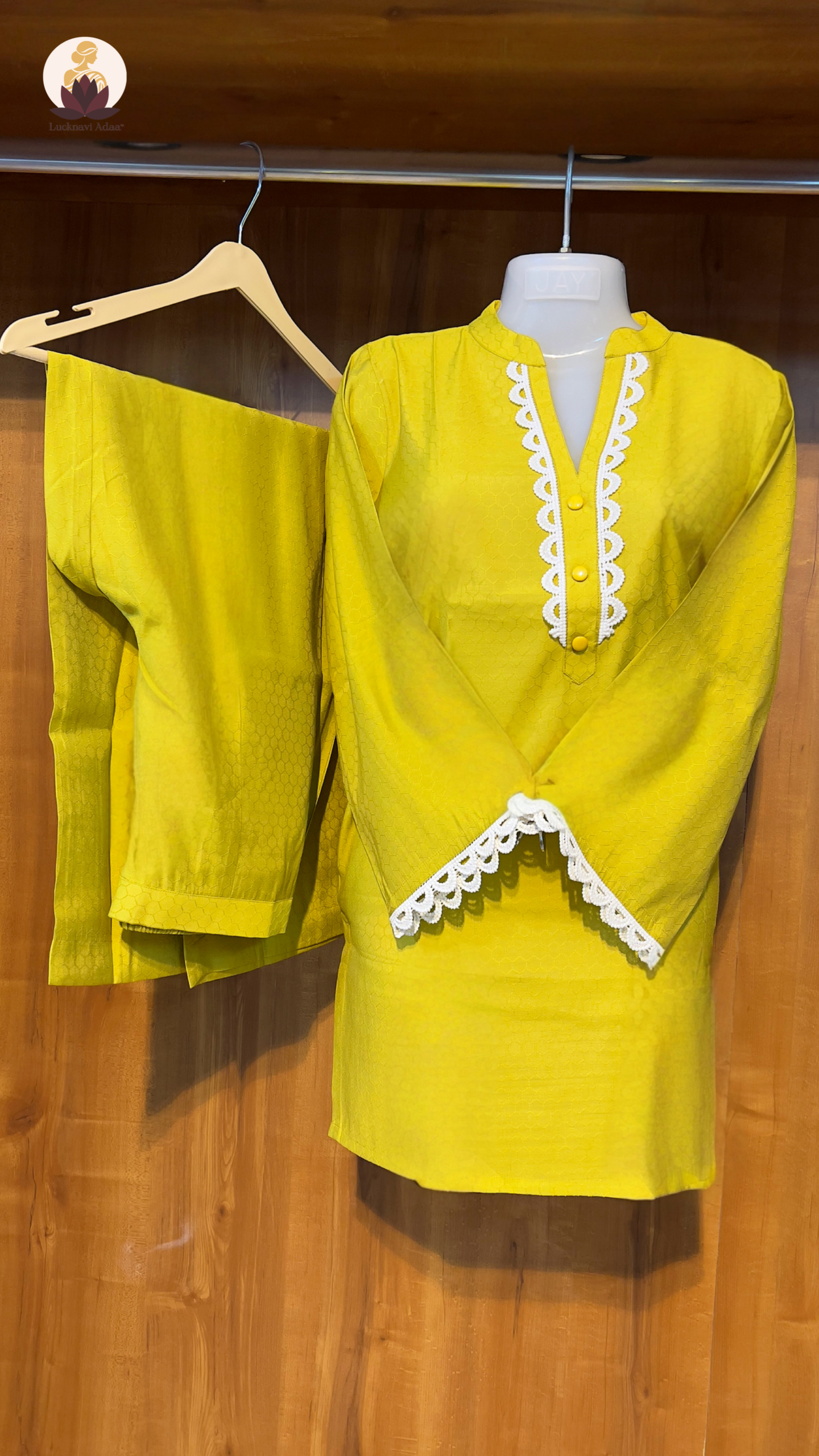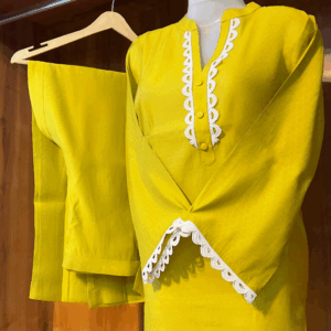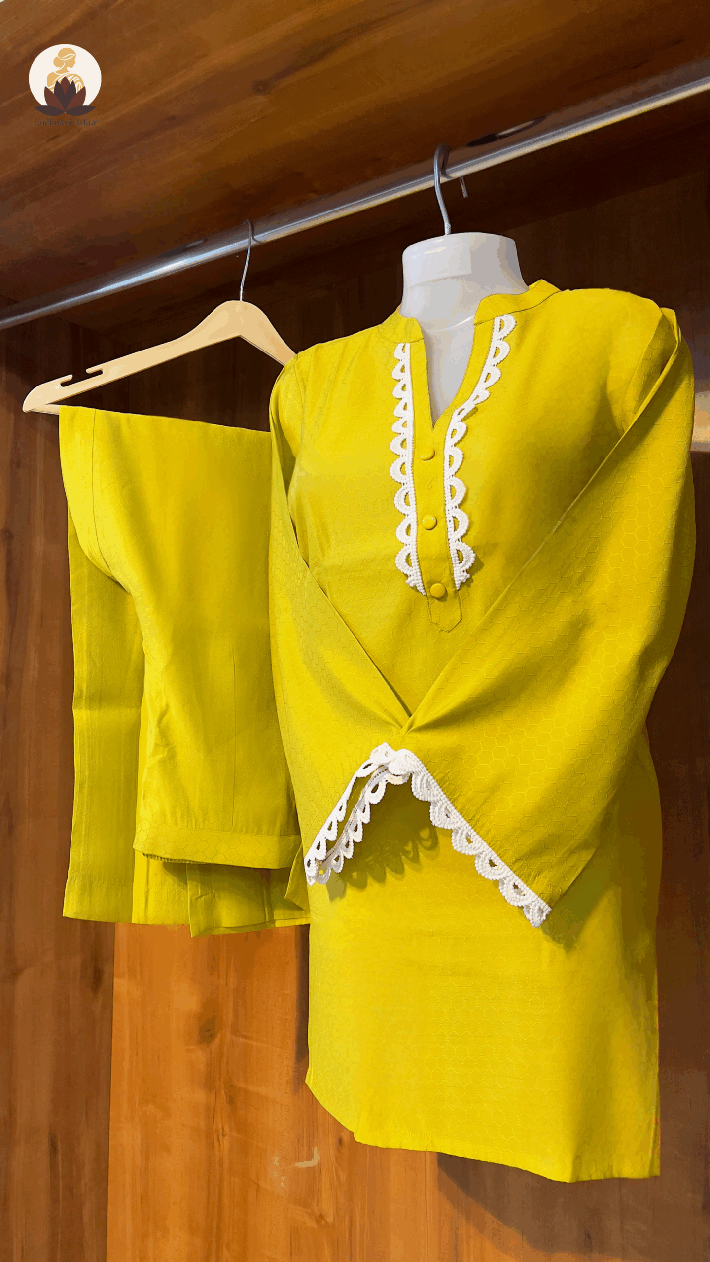 Stay stylish with our Mustard Glow Co-ord Set, designed to make you shine wherever you go. The rich mustard hue paired with delicate white lace accents gives this outfit a perfect blend of elegance and modern flair. With its flattering fit and premium fabric, it’s ideal for brunch dates, festive evenings, or even office chic looks.