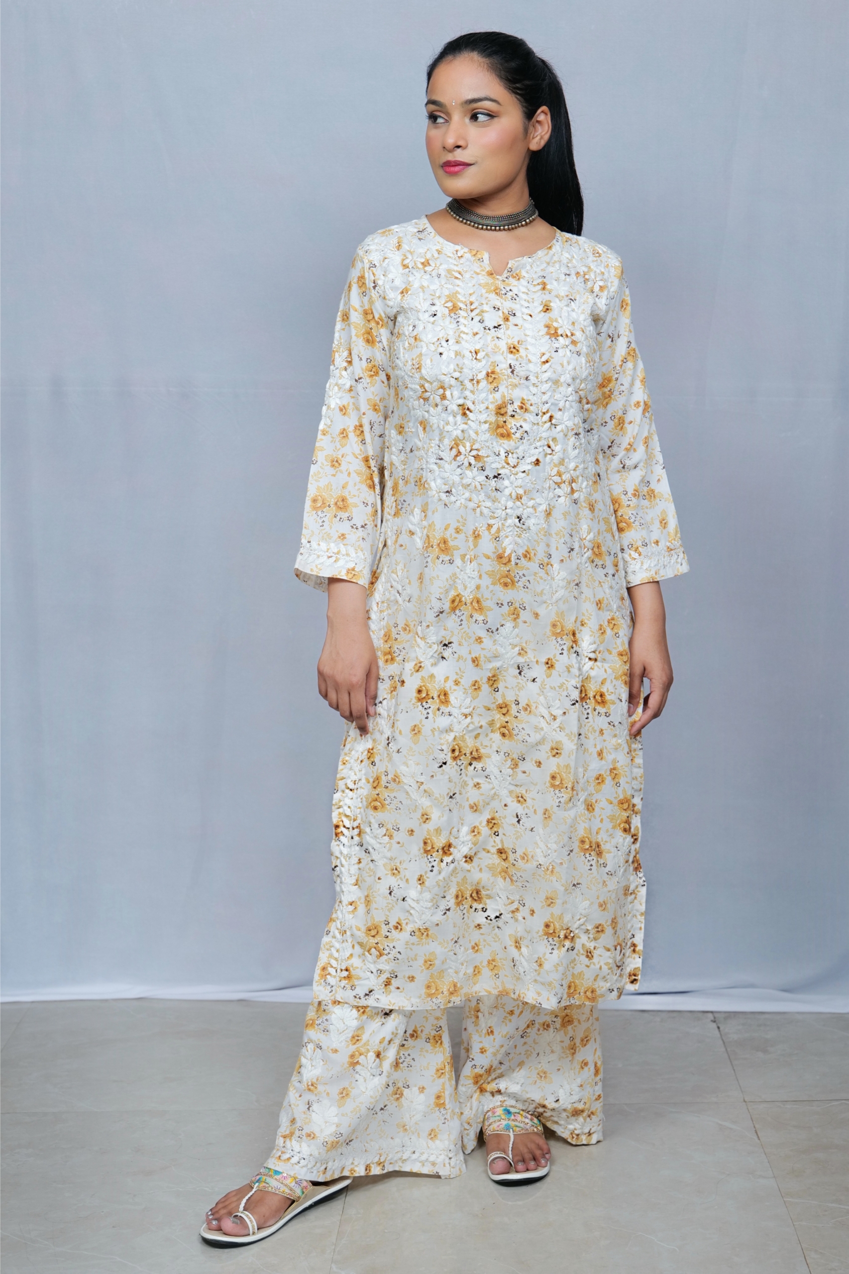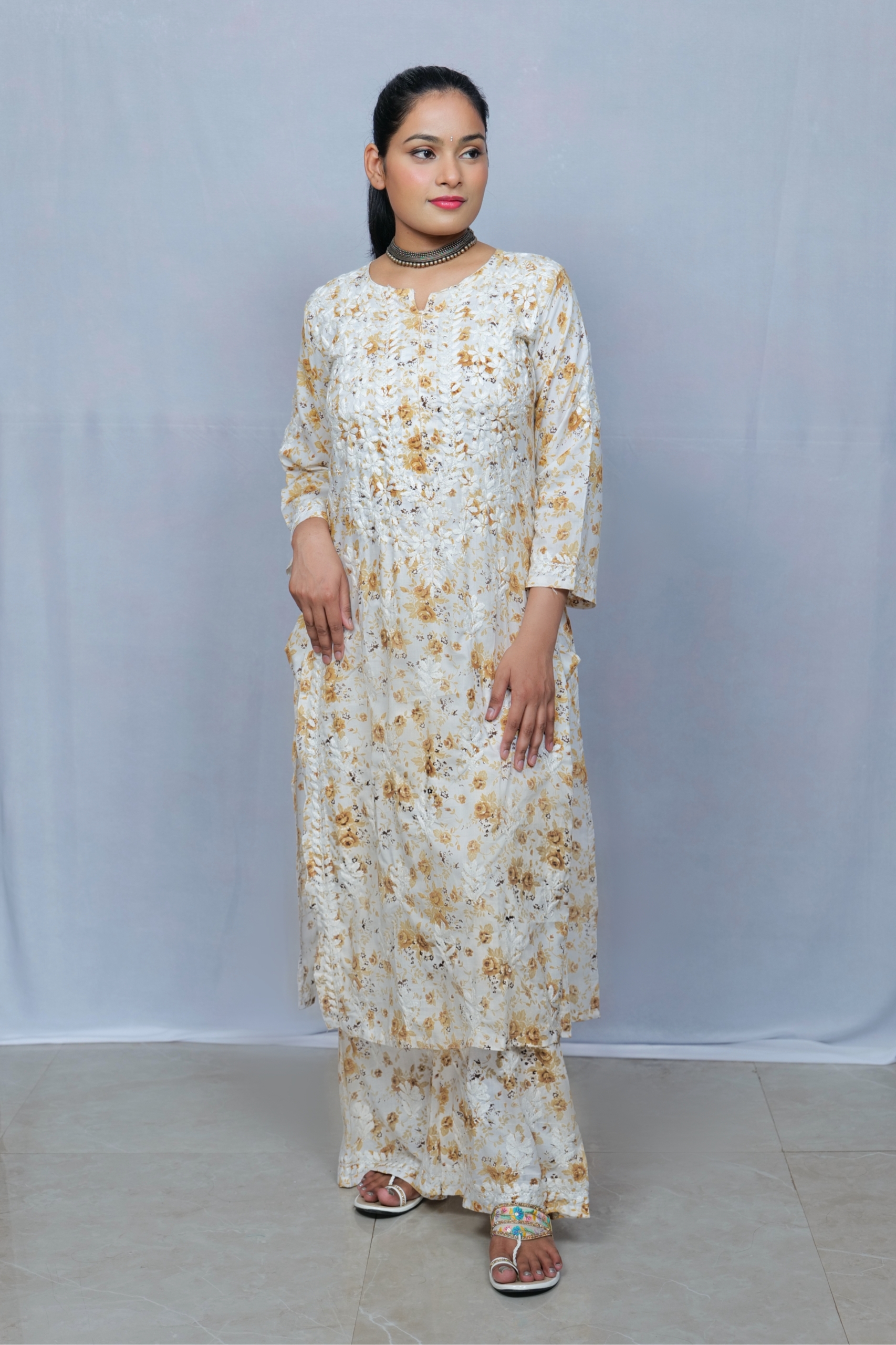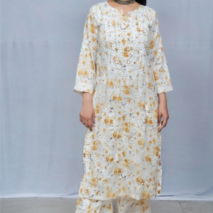 A blend of timeless embroidery and soft elegance — this floral Chikankari muslin kurta set by Lucknavi Adaa is perfect for festive charm and everyday grace. Made with breathable muslin fabric, featuring intricate Chikankari work and soothing prints, it’s designed to keep you stylish and comfortable all day long.