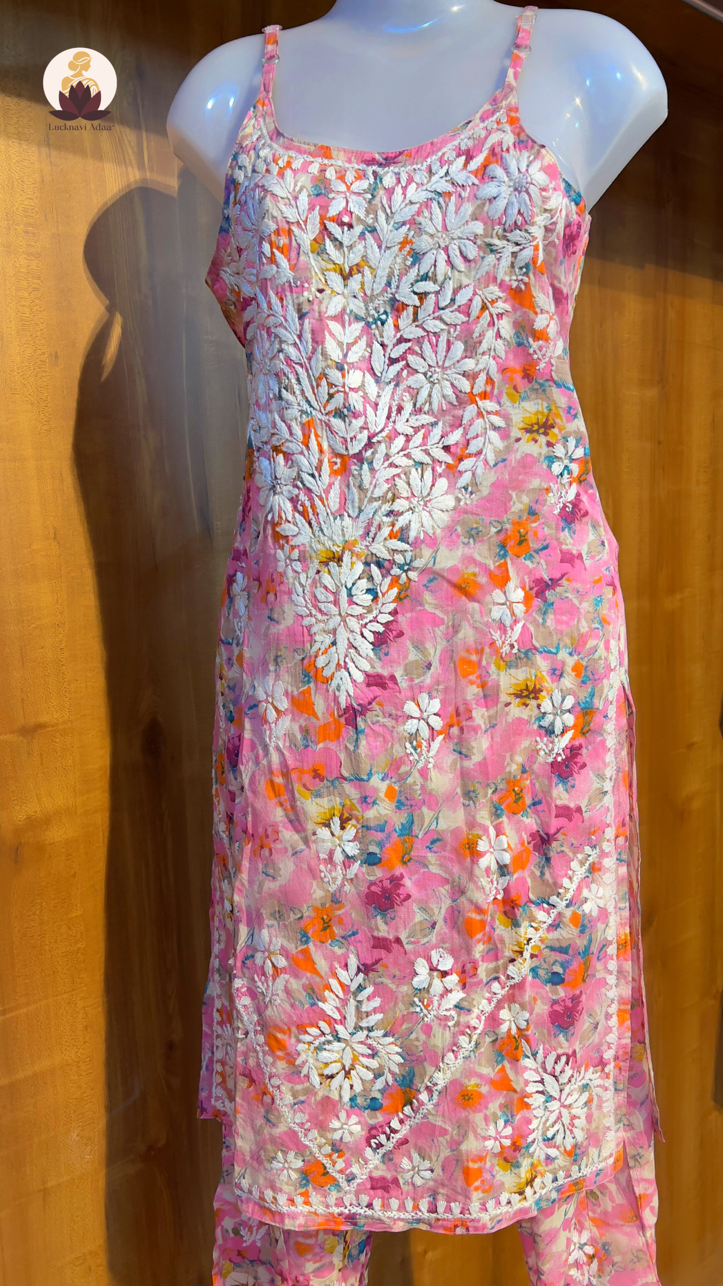 Turn heads effortlessly with this dreamy Mul Cotton Noodle Strap Kurti & Plazzo Set from Lucknavi Adaa. Designed in soothing lavender tones with intricate white threadwork, this ensemble blends modern cuts with timeless elegance. The breezy noodle strap kurti adds a playful edge, while the flowy lazo pants bring unmatched comfort — perfect for sunny days, festive moods, or your next Insta-worthy outing!
